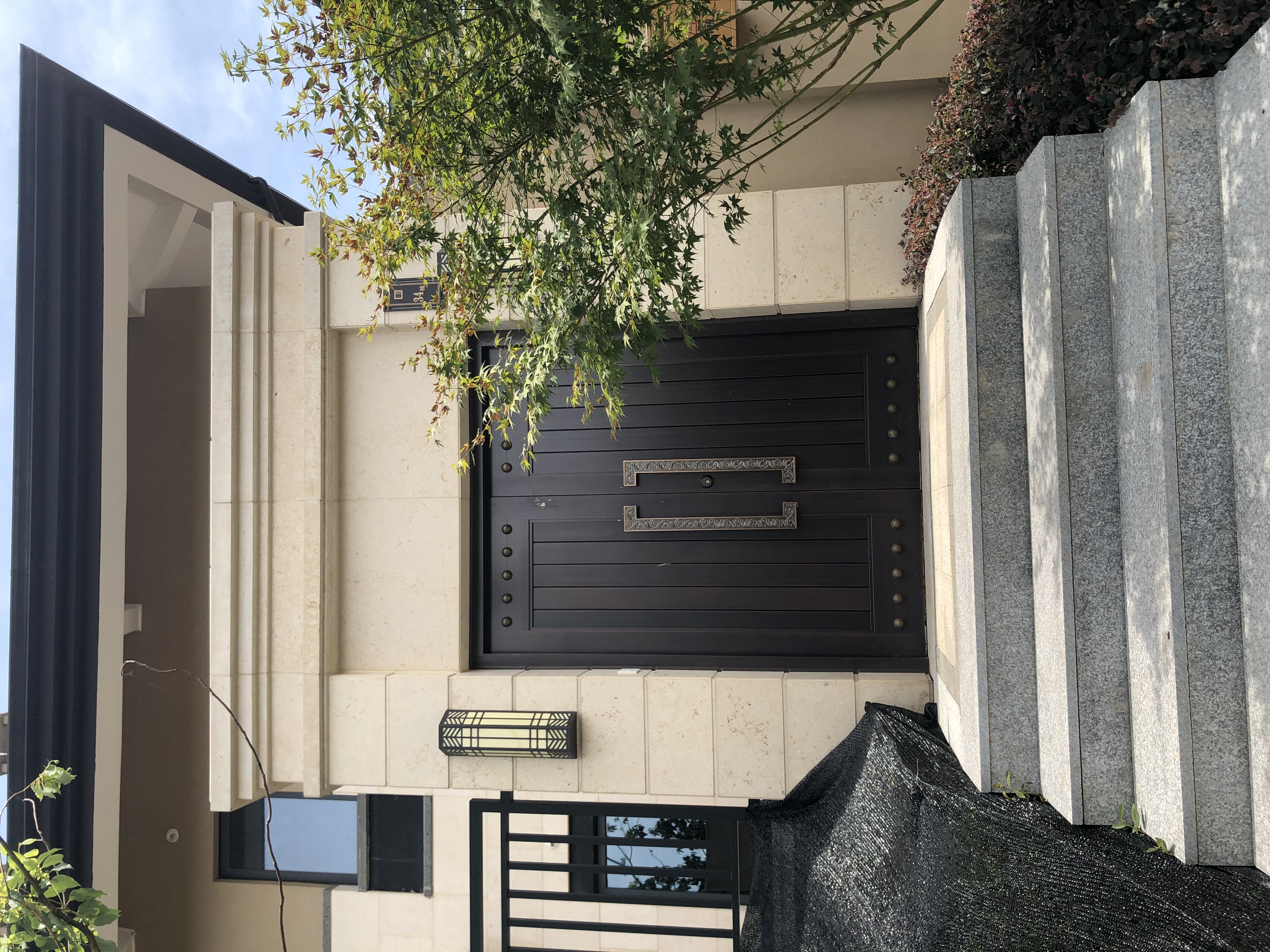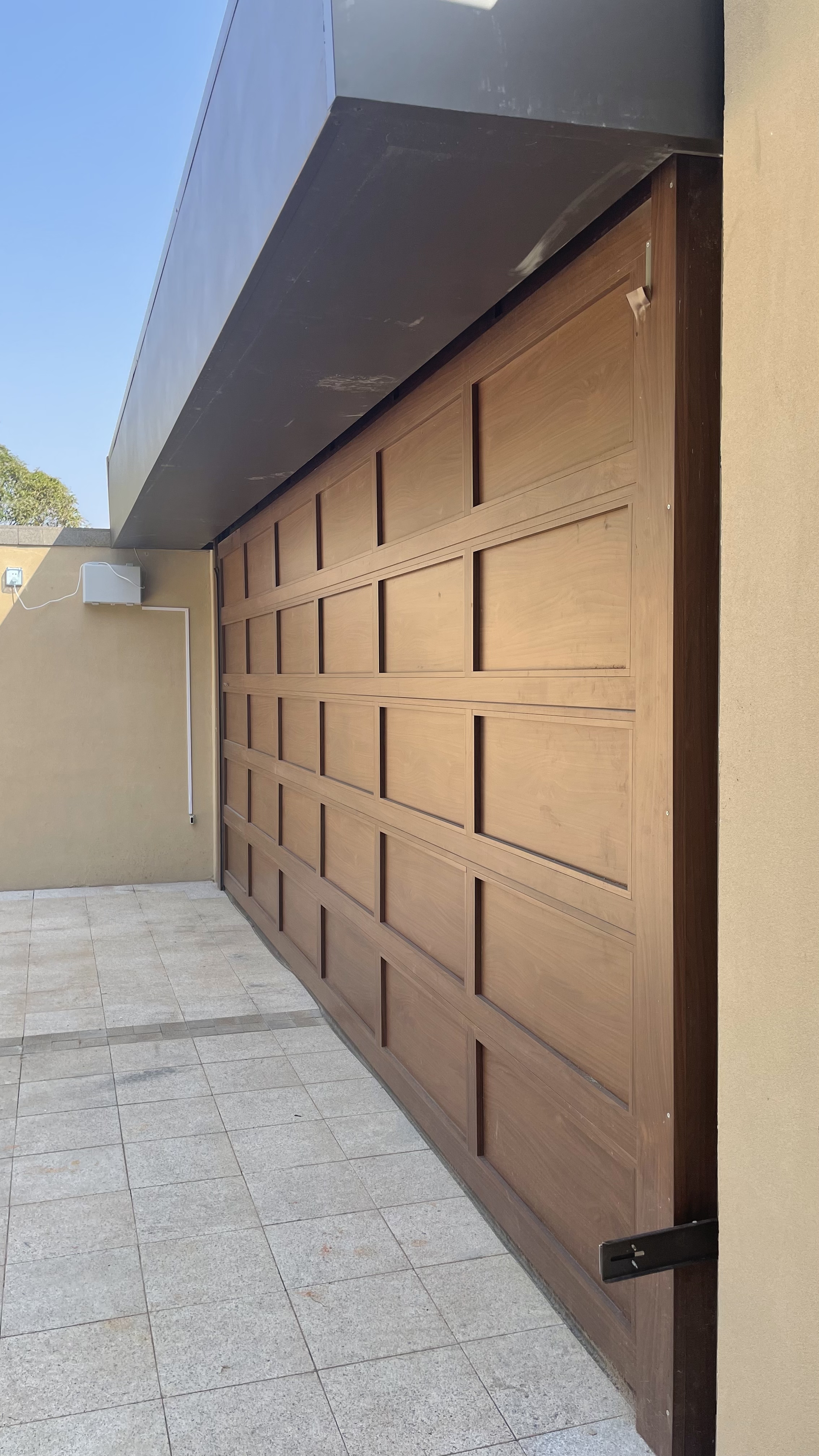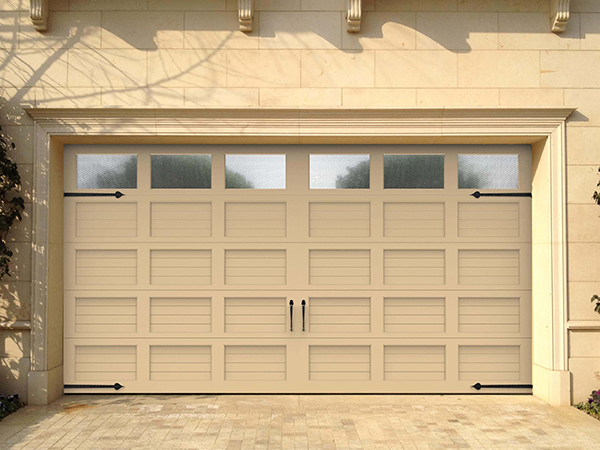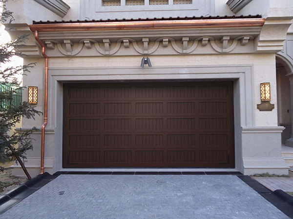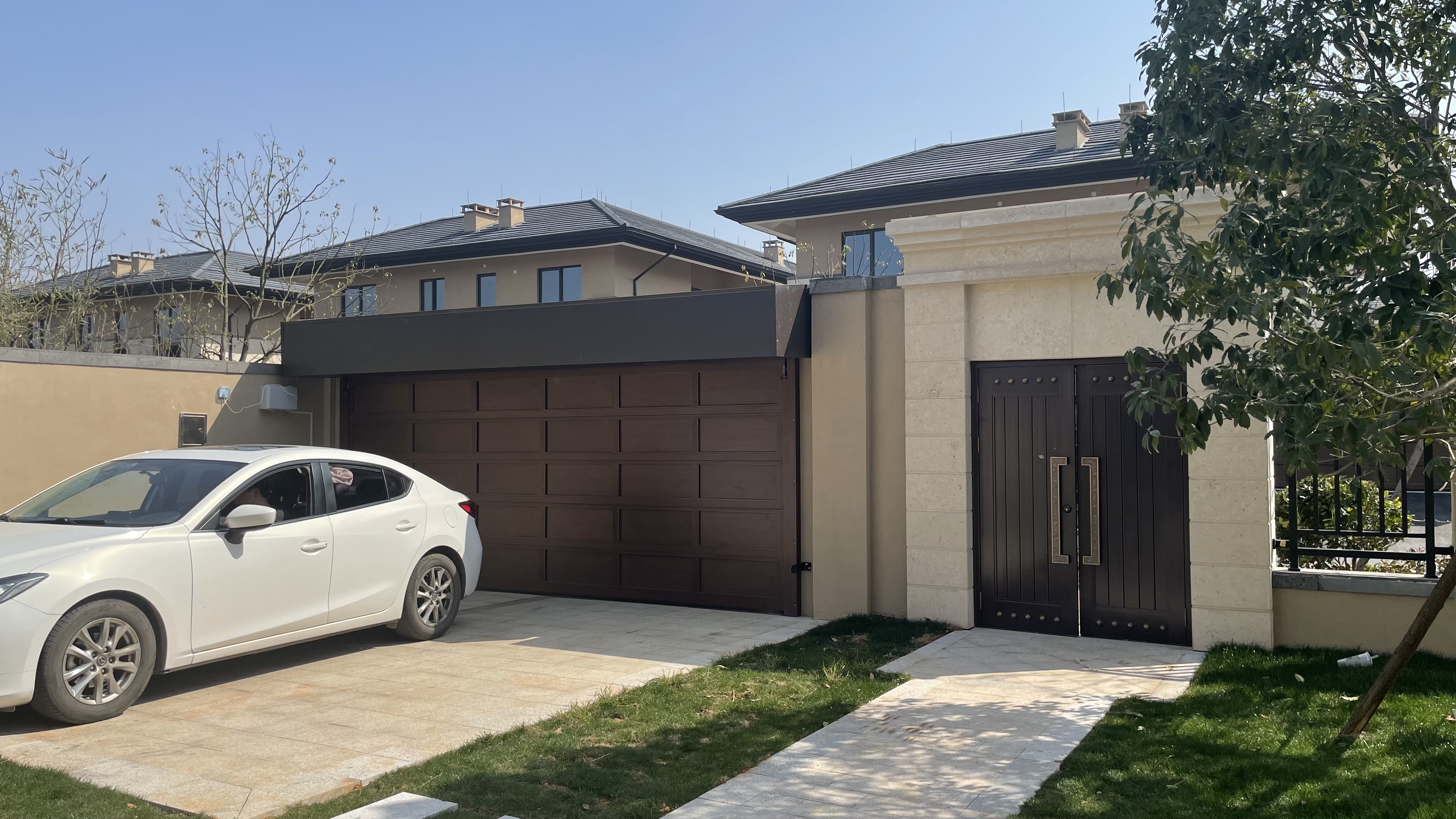 车库门门板采用铝合金型材制作,表面做喷塑处理。铝合金车库门的优点是不会开裂,后期维护保养方便。多用与中高端别墅室内车库大门。